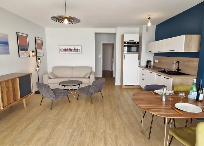 公寓距离Eglise Saint-Pierre有5分钟的步行路程.走路17分钟就可以抵达Le Musée du Blockhaus Hôpital. 只需要步行5分钟即可到达市中心. Le Sloop提供法国美食,走路7分钟即可抵达这家餐馆. 公寓距离圣克鲁瓦卡索修道院博物馆不远.